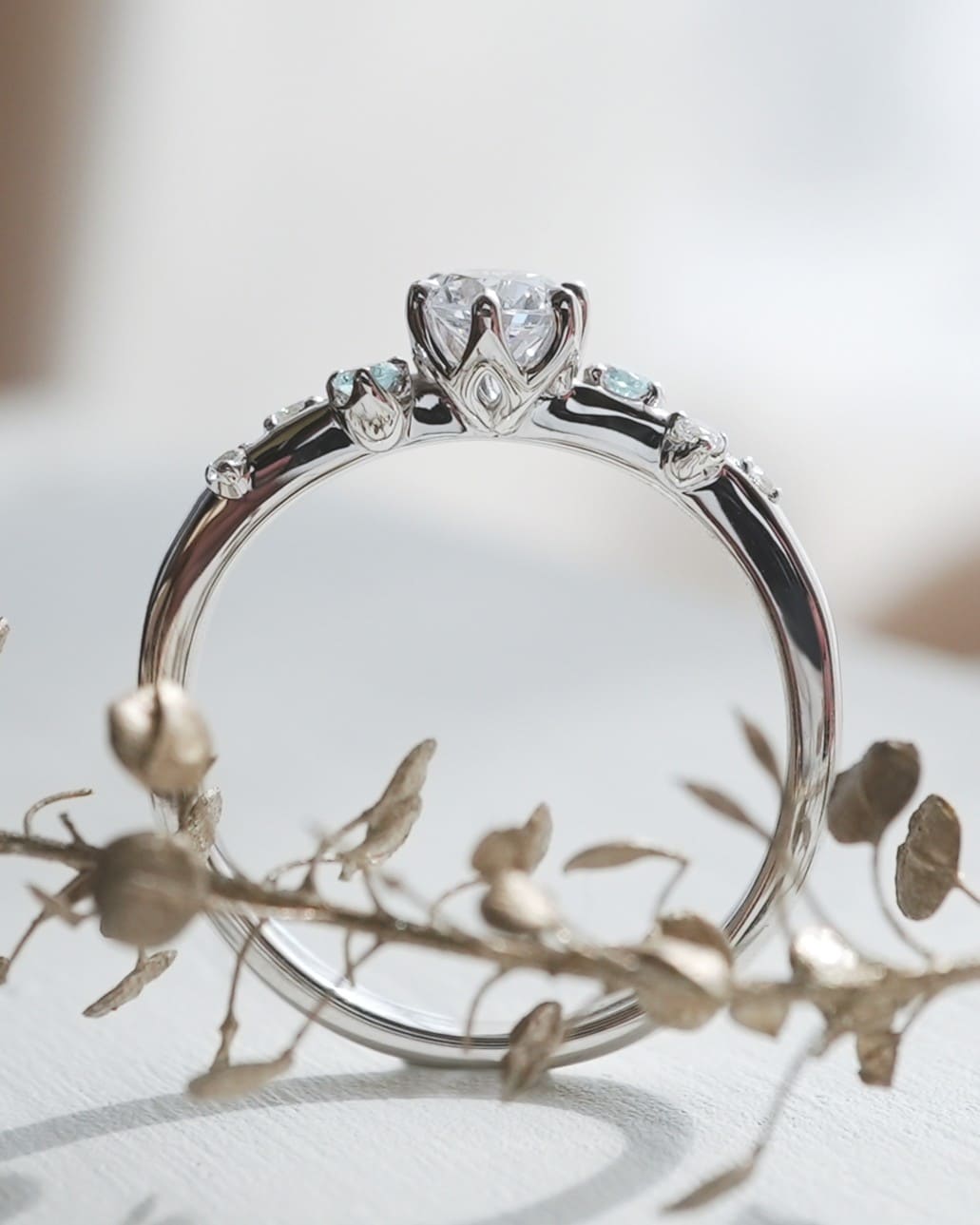 力強く、そしてどこか神秘的な輝きを、愛の誓いである婚約指輪に込めました。