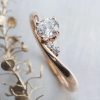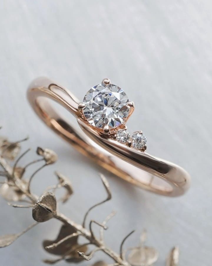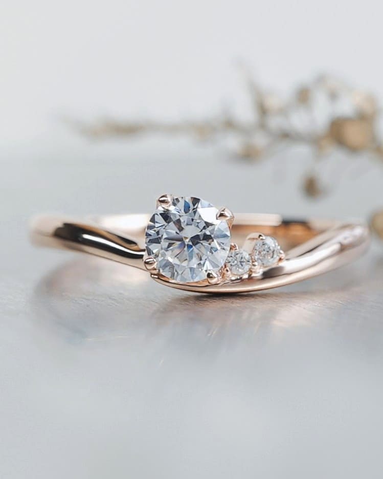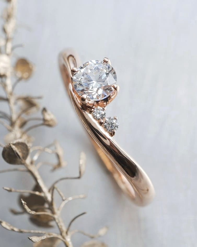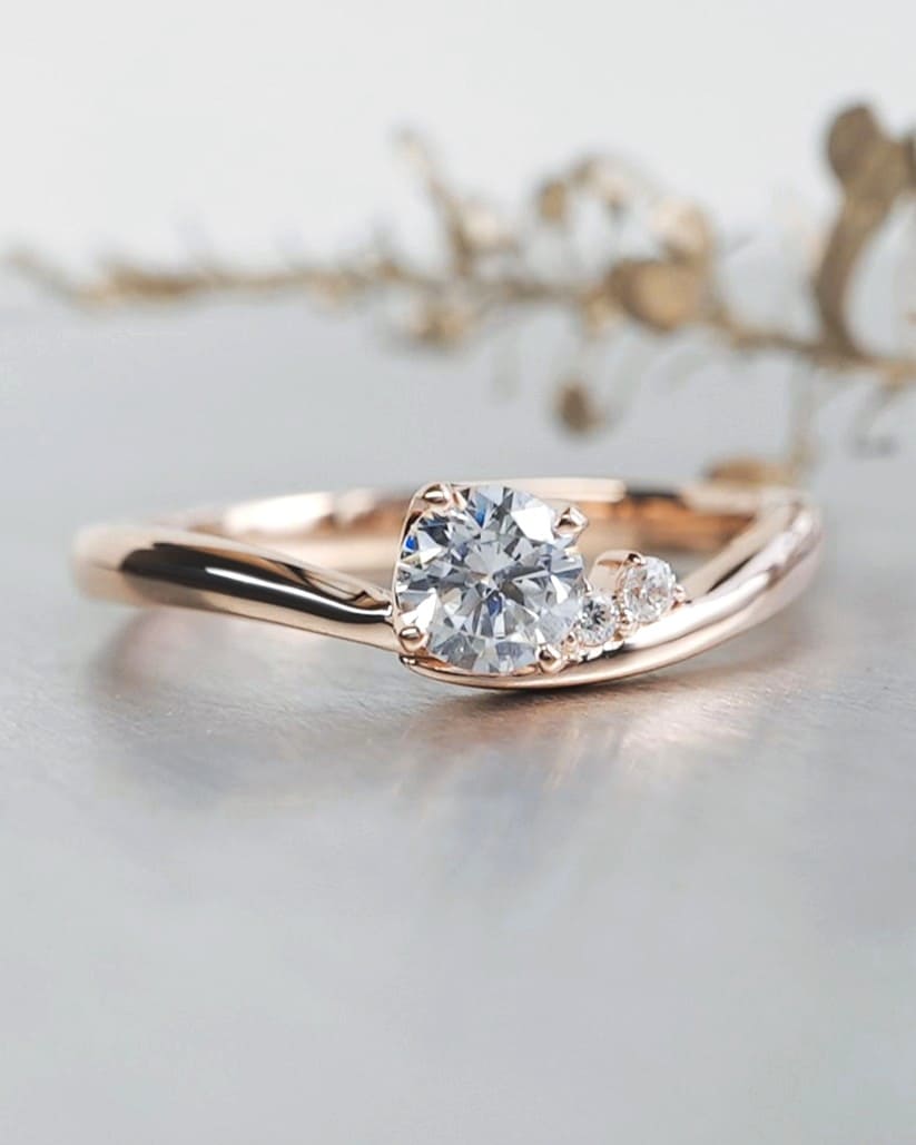 指輪のアームが、中央に向かって緩やかにカーブを描くウェーブデザイン。
