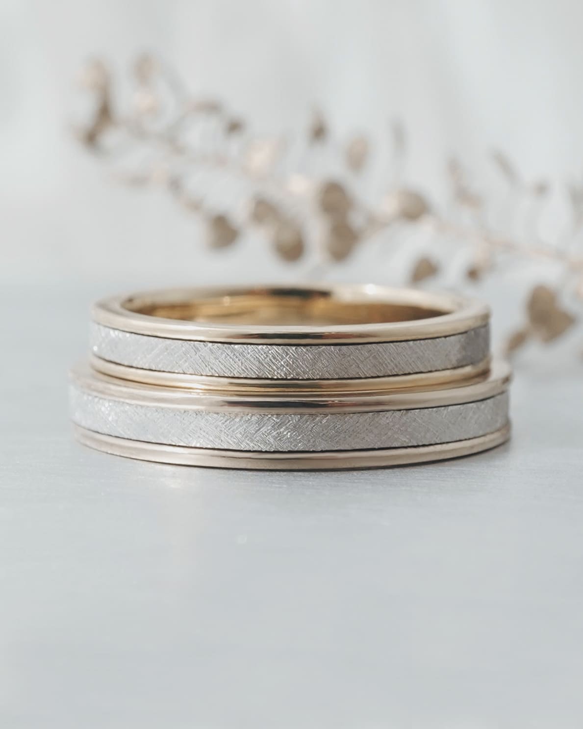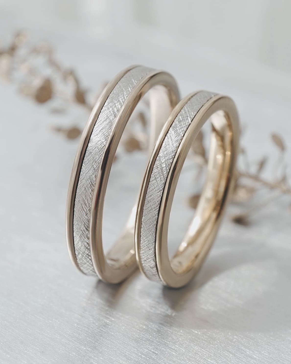 Men’s(下):Pt950×K18シャンパンゴールド 幅平均3.2mm 厚み平均1.7mm