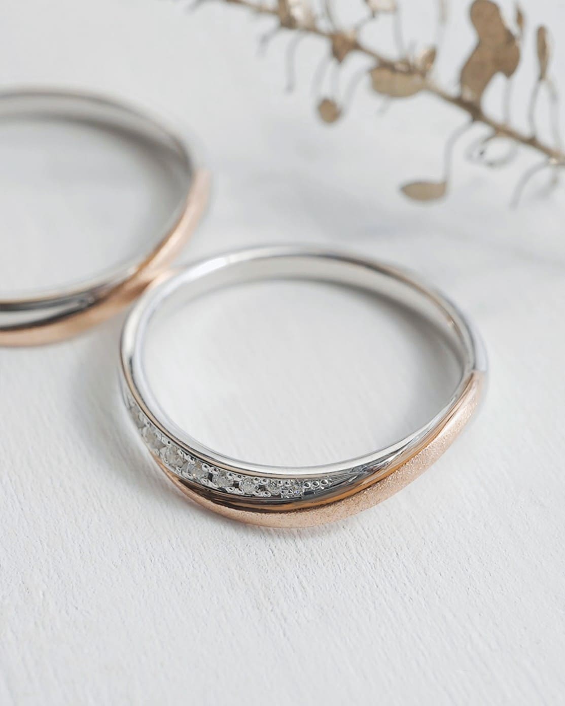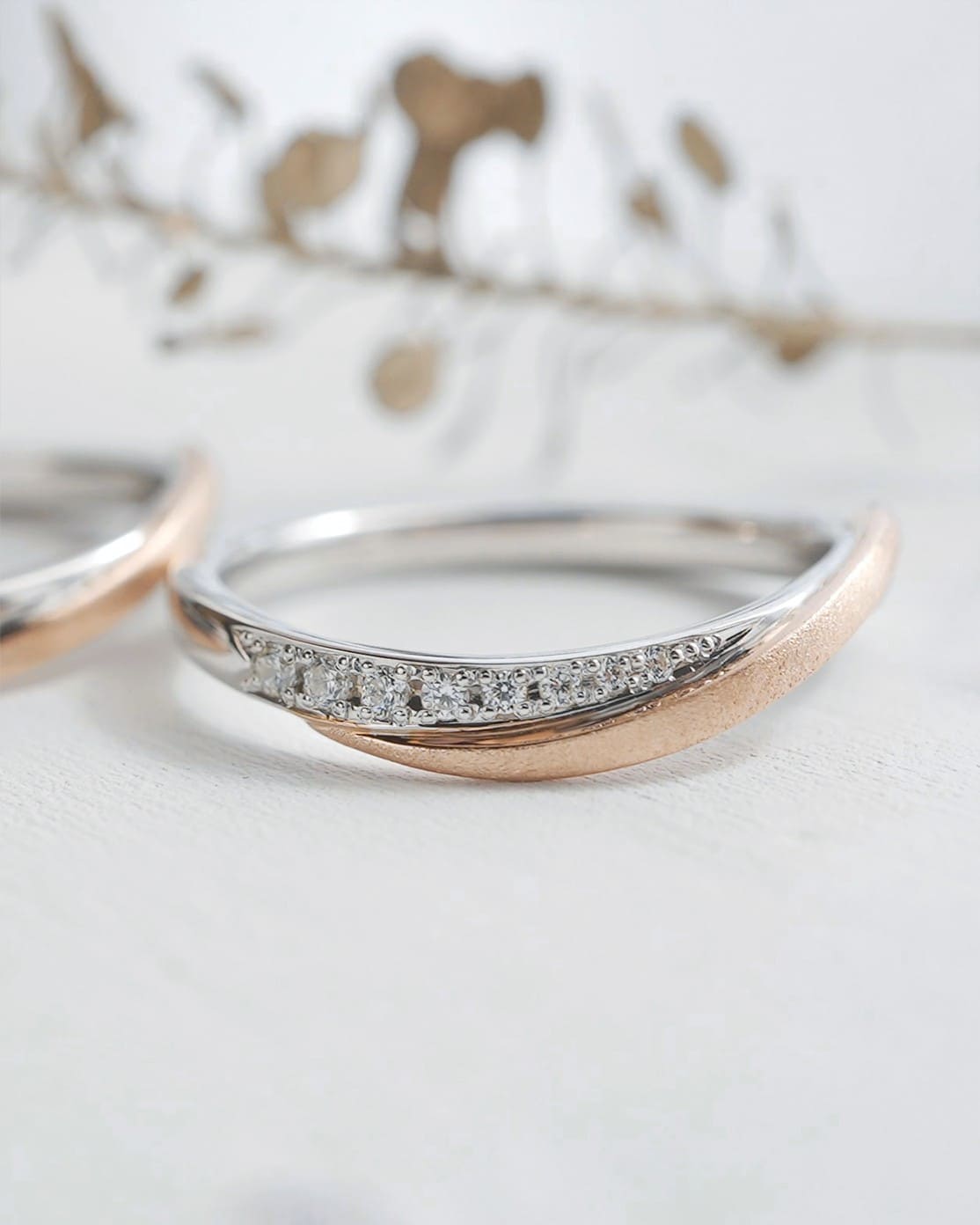Men’s(下):Pt950×K18ピンクゴールド 最大幅2.6mm 最小幅2.1mm厚み平均1.6mm