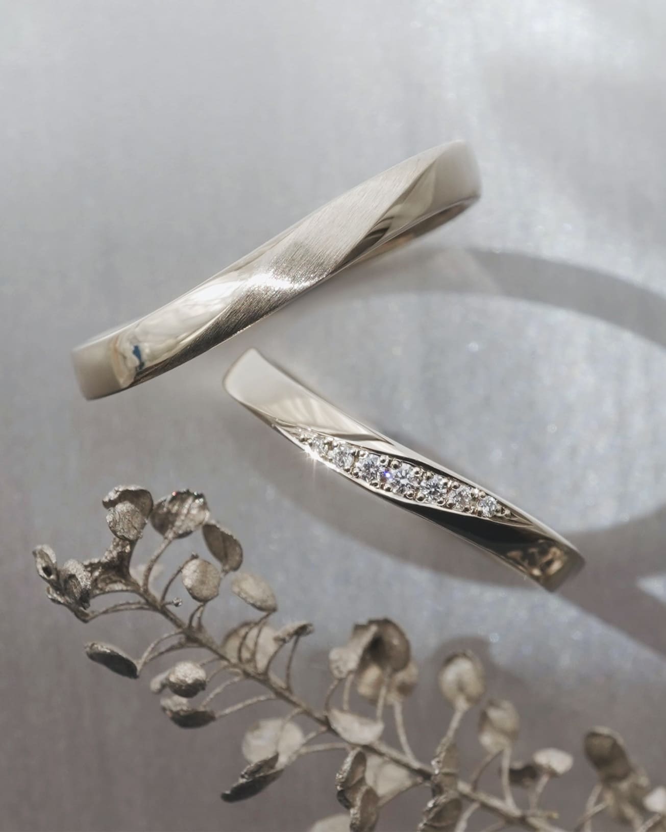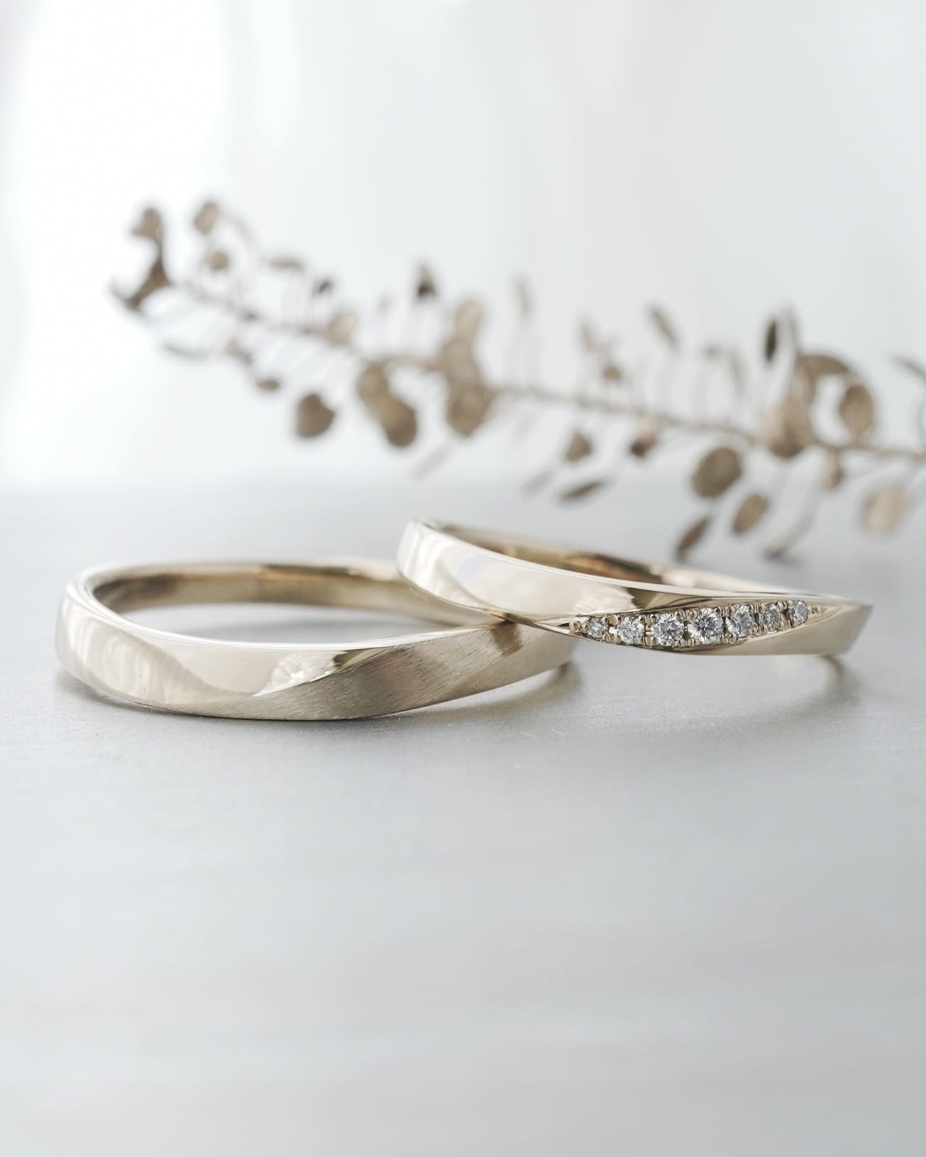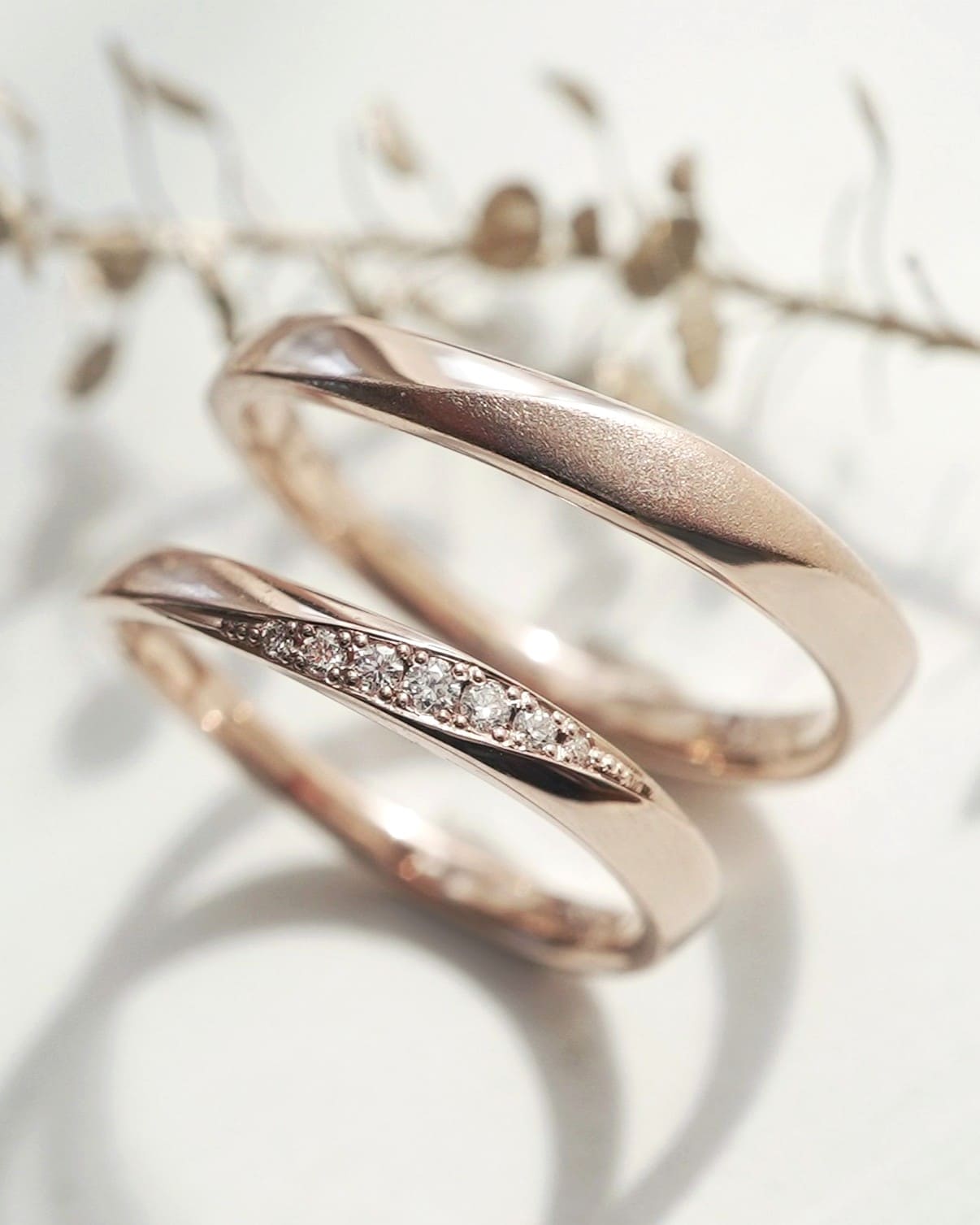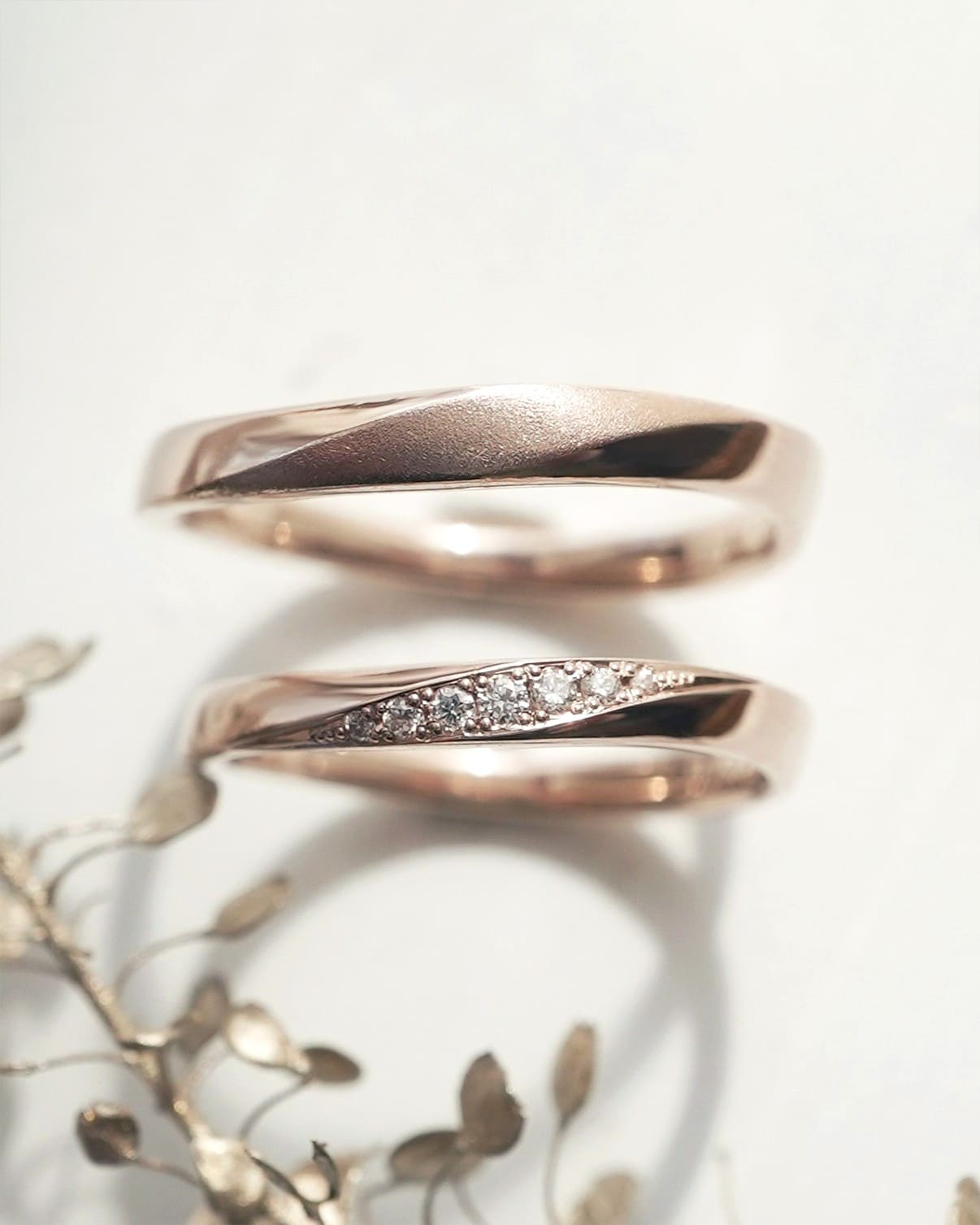 Lady’s(上):K18ラベンダーゴールド TOP幅2.4㎜ Back幅2.0㎜ 厚み平均1.6㎜