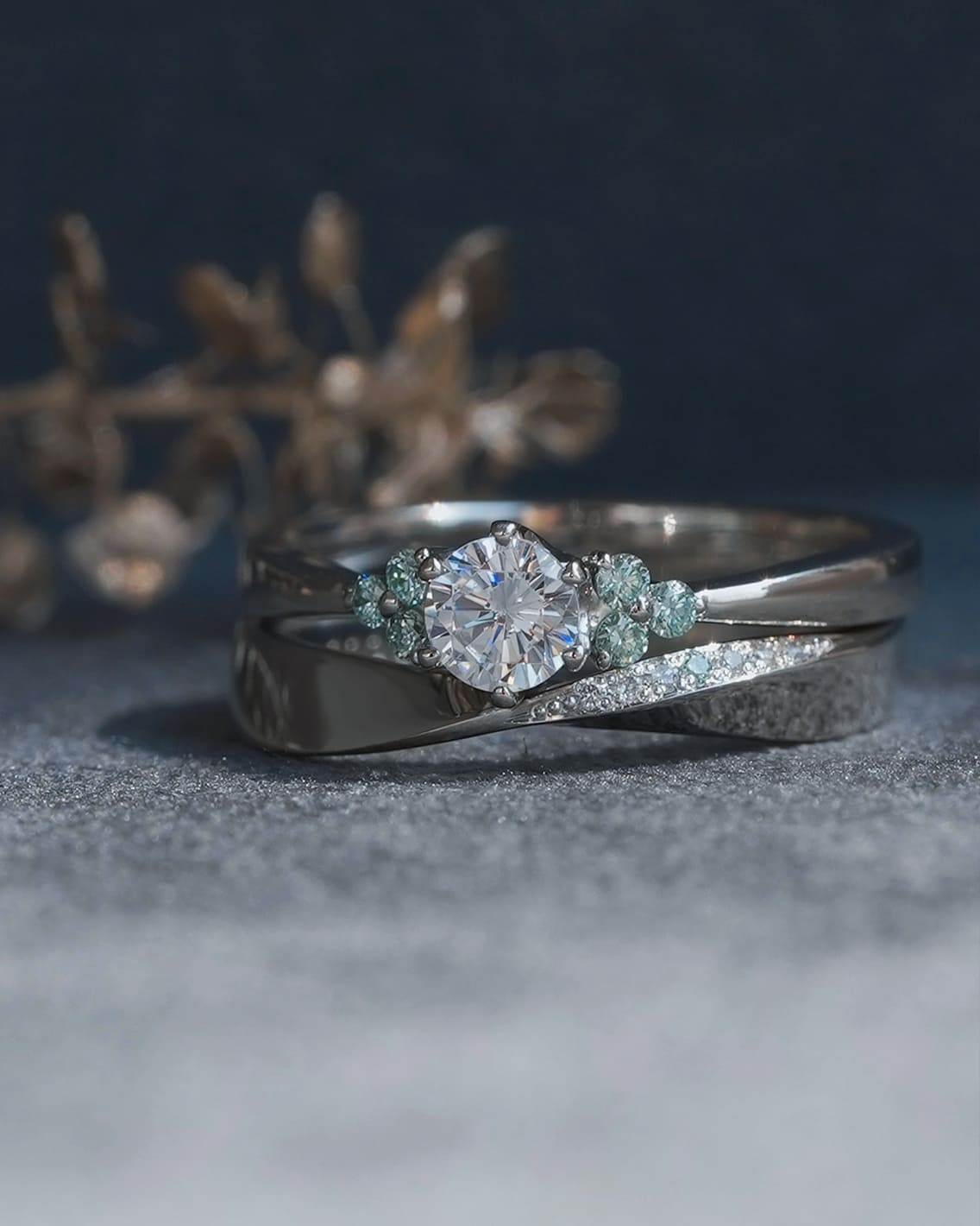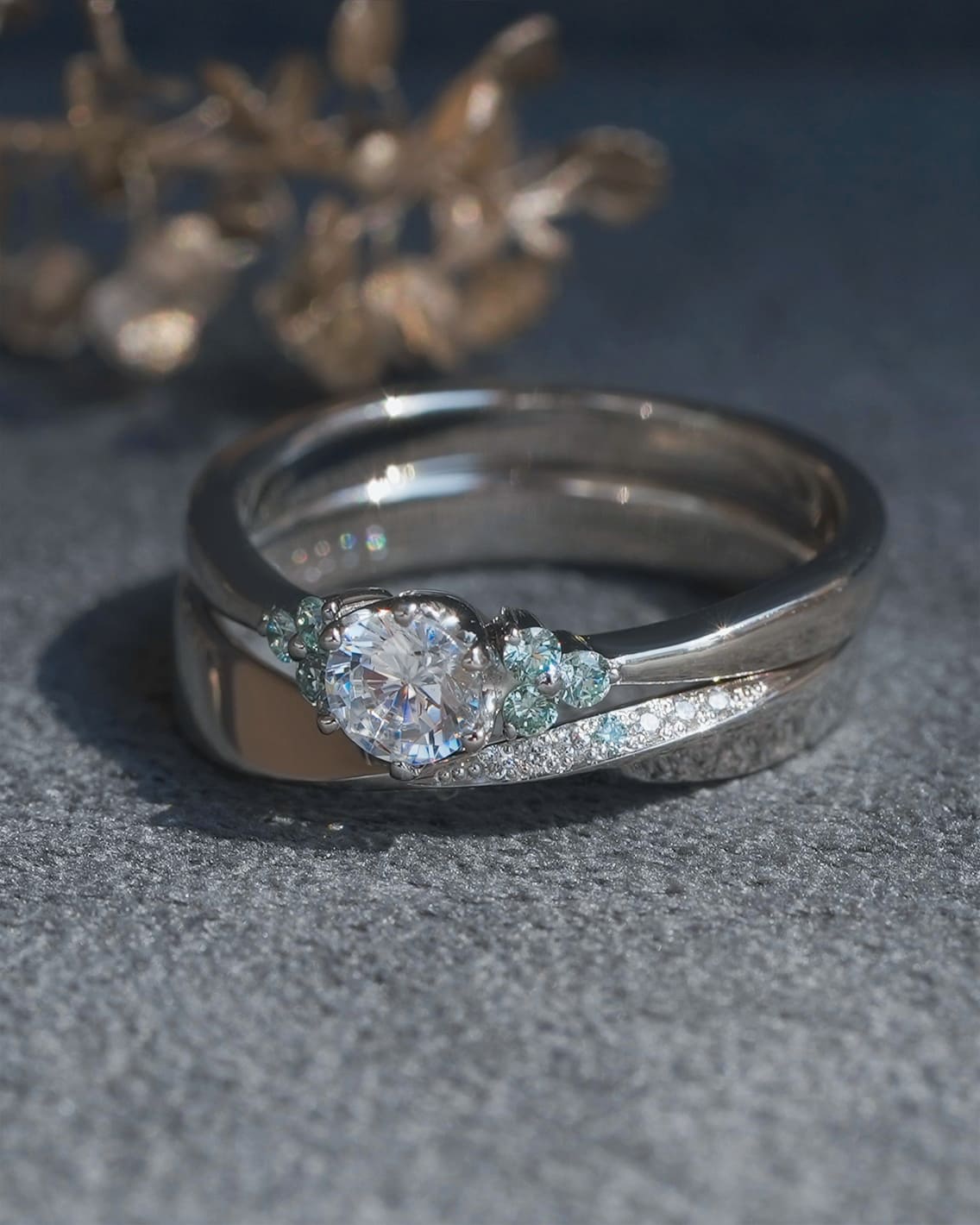 中央のダイヤモンドを包み込むようなカップ状のセッティング