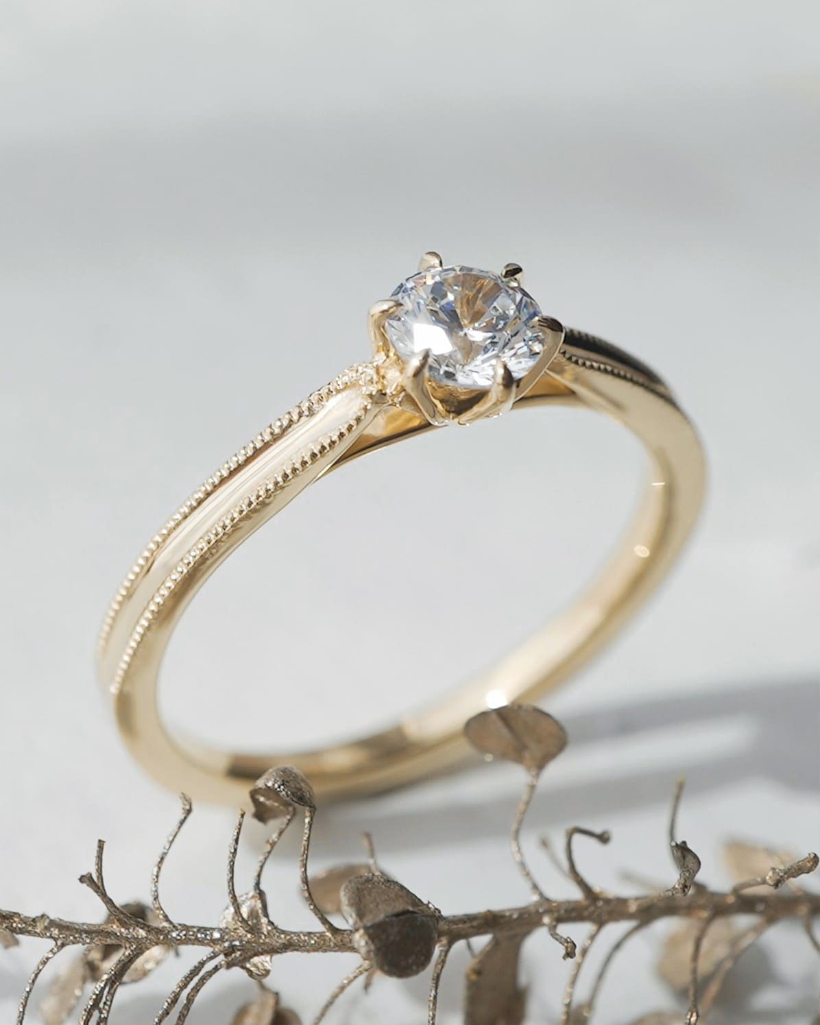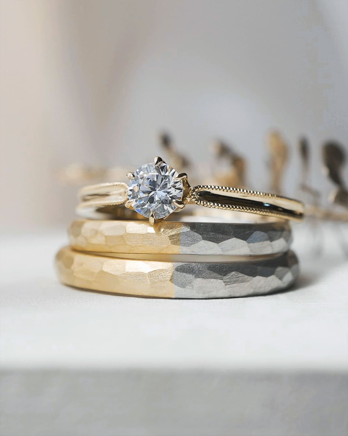 光の束をイメージして作製した婚約指輪
