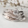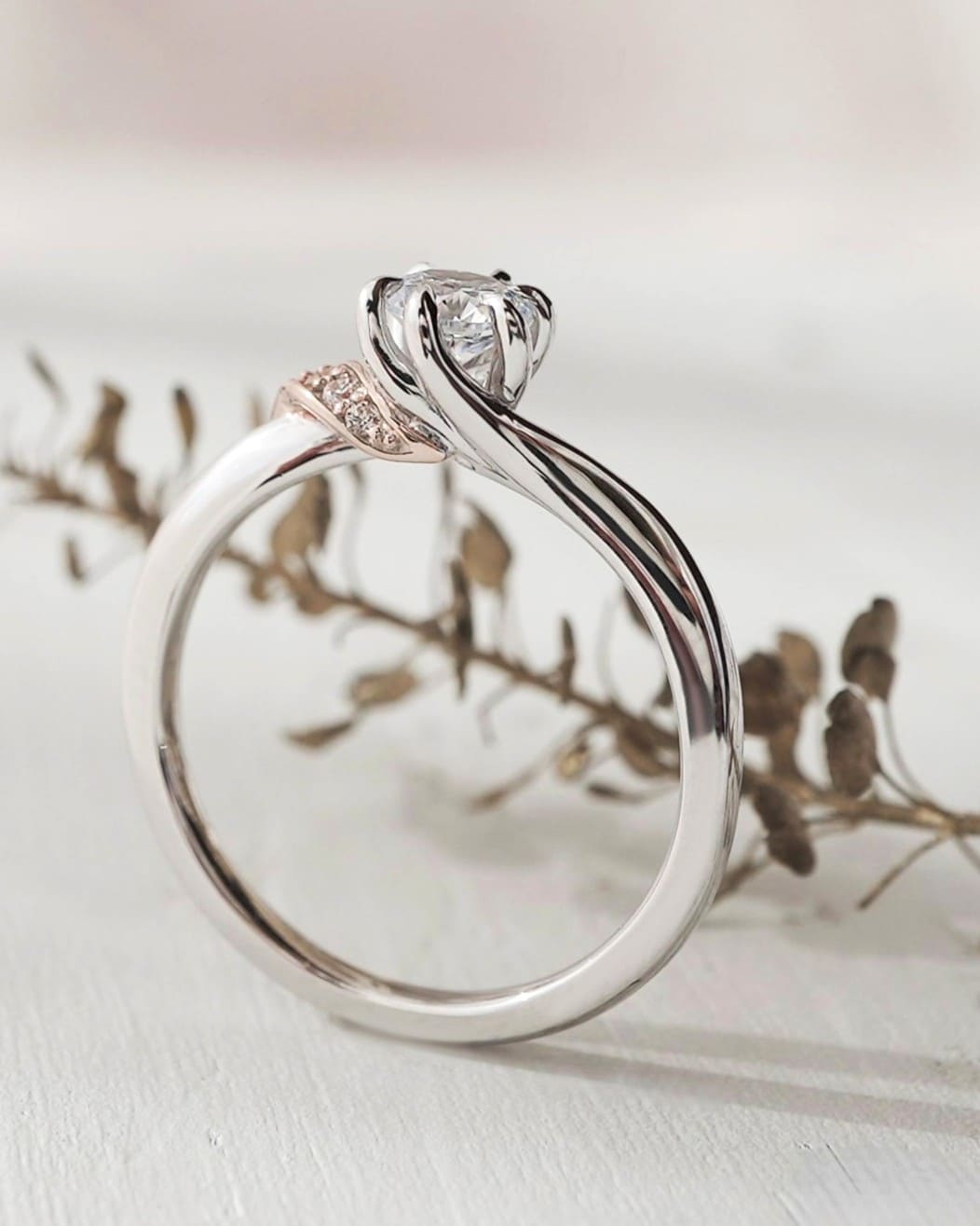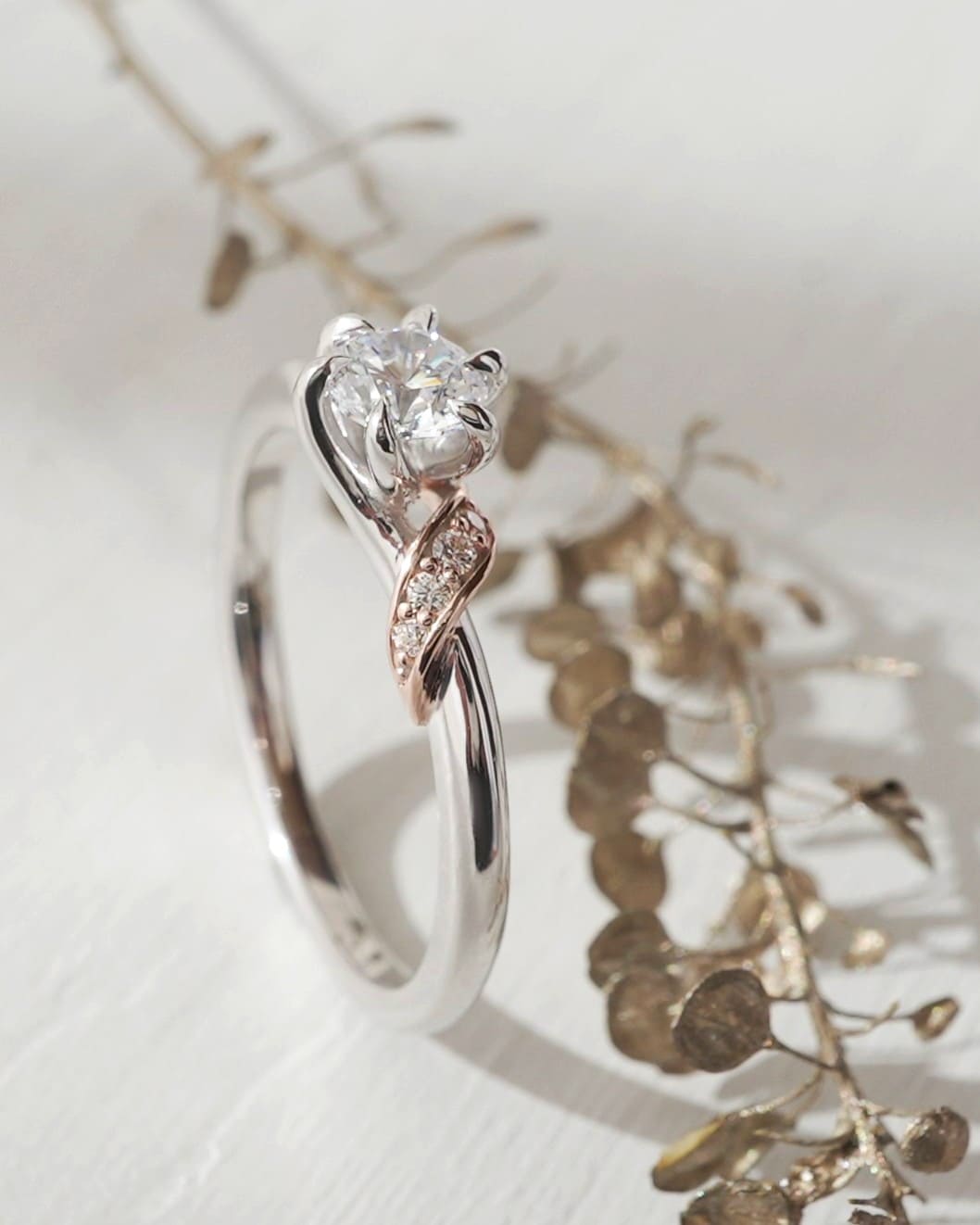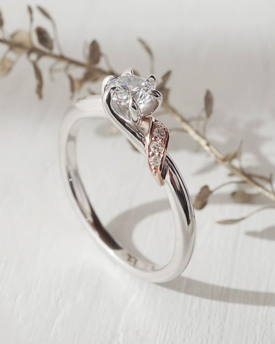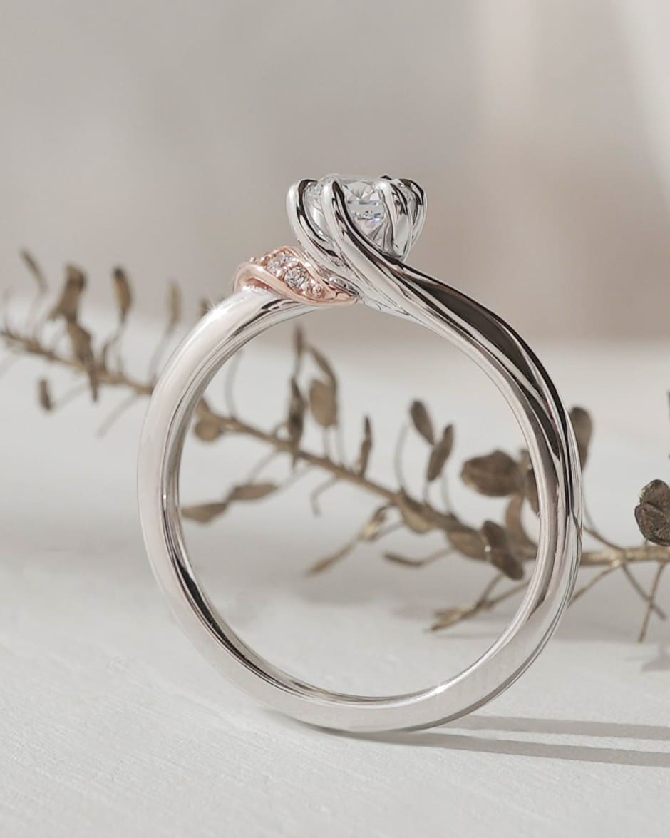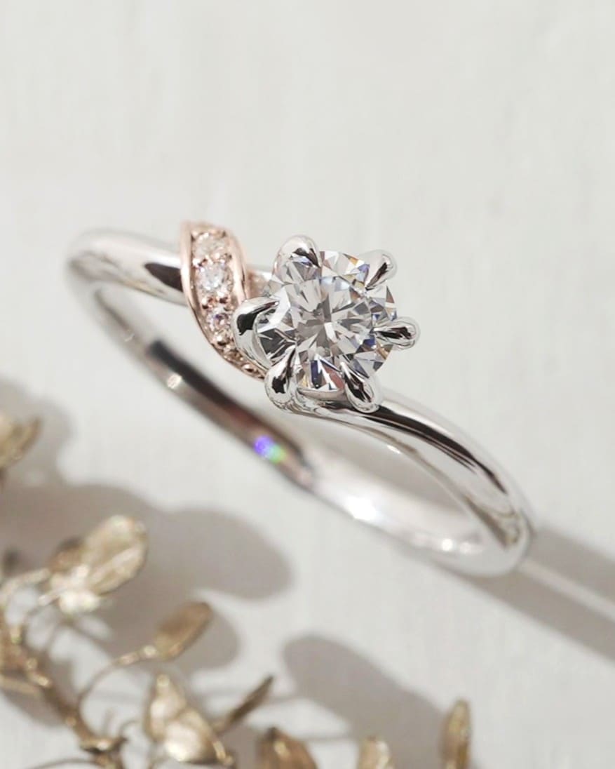 光を受けながらこぼれ落ちる、そんな情景をイメージした婚約指輪。